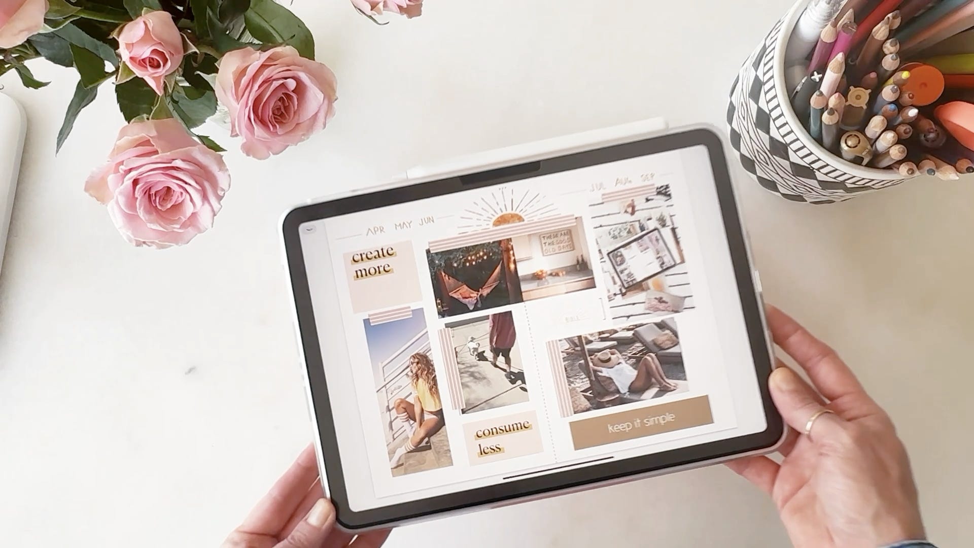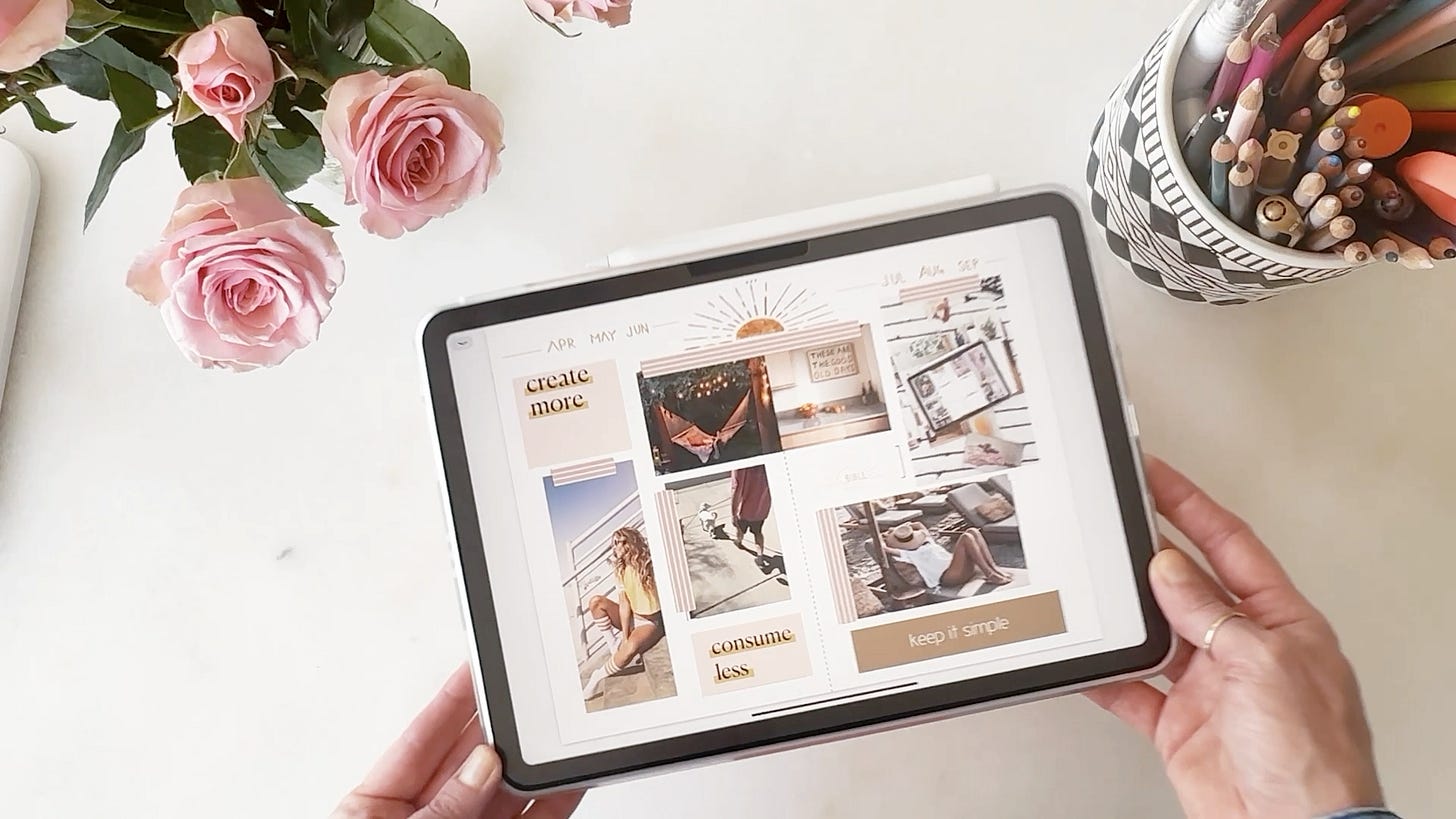 Why not create your own “Summer Arc” vision for the next six months? Whether you use a poster board, a digital tablet, or a bullet journal, the format doesn’t matter as much as the act of sitting down to reflect on what you want to focus on. Think fun, summery, and joyful—no heavy lifting required!
